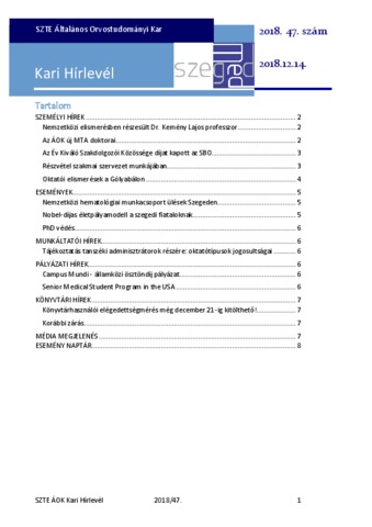 SZTE Általános Orvostudományi Kar hírlevél (2018) 47.sz.