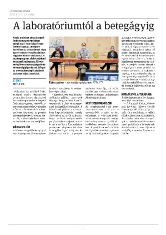 Koós Kata: A laboratóriumtól a betegágyig. In: Délmagyarország, (110) 269. p. 3. (2020)