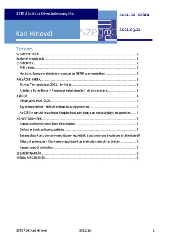 SZTE Általános Orvostudományi Kar hírlevél (2021) 10.sz.