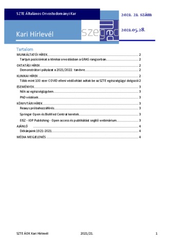 SZTE Általános Orvostudományi Kar hírlevél (2021) 21.sz.