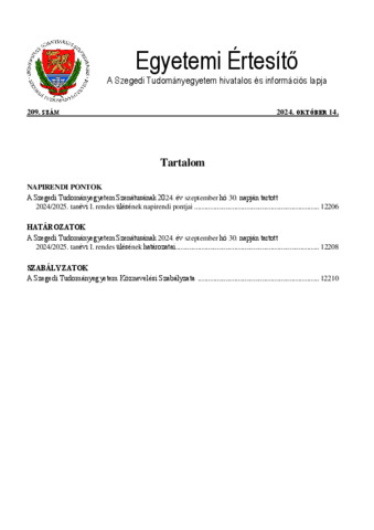 Egyetemi értesítő : Szegedi Tudományegyetem hivatalos és információs lapja - 2024/209.