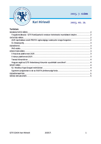 SZTE Szent-Györgyi Albert Orvostudományi Kar - Kari hírlevél : 2025. 7. szám.