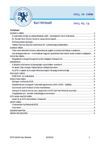 SZTE Szent-Györgyi Albert Orvostudományi Kar - Kari hírlevél : 2025. 20. szám.