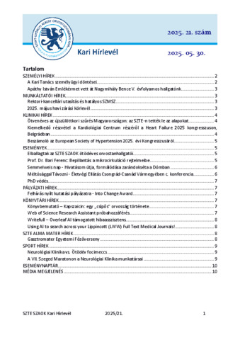 SZTE Szent-Györgyi Albert Orvostudományi Kar - Kari hírlevél : 2025. 21. szám