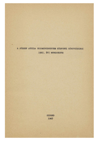 | Kulcsszavak: | Egyetemi könyvtár - Szeged - munkaterv - 1967 |
