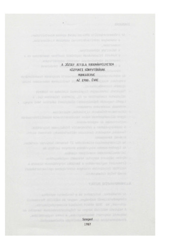 | Kulcsszavak: | Egyetemi könyvtár - Szeged - munkaterv - 1988 |