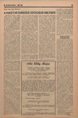 Fiatalok : [folyóirat]. In: Szegedi híd : a Szegedi Egyetemi Ifjuság [!Ifjúság] lapja, (3). p. 11. (1942)